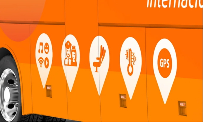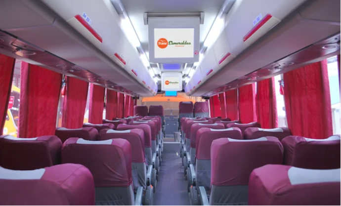 Asientos ergonómicos, reclinables, apoya pies, porta equipaje, vista panorámica, baño y TV.